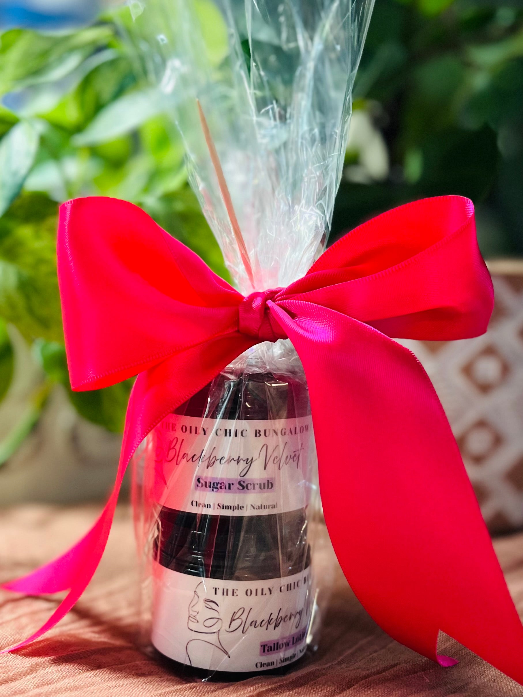 Indulge in luxury with our Scrub & Lotion Gift Set. Pamper yourself or a loved one with our 2 or 6 oz scrub and matching lotion, handmade with all-natural ingredients in Cincinnati, Ohio. Deliver an exclusive and sophisticated touch with this beautifully wrapped gift set.